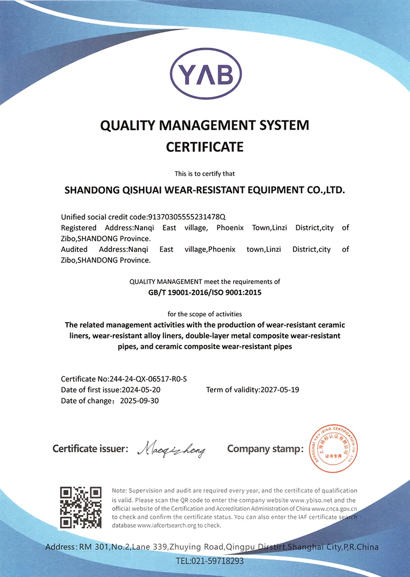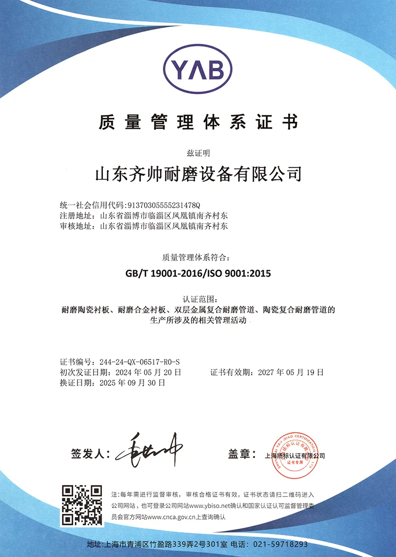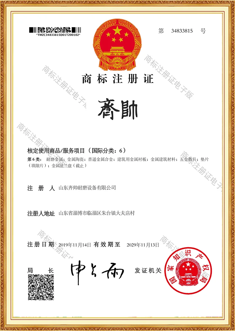 A empresa possui certificação ISO9001 e recebeu inúmeras patentes de modelos de utilidade, ganhando reconhecimento por sua força tecnológica. Possuímos nossa própria fábrica e estamos profundamente envolvidos na indústria de produtos resistentes ao desgaste há mais de uma década.