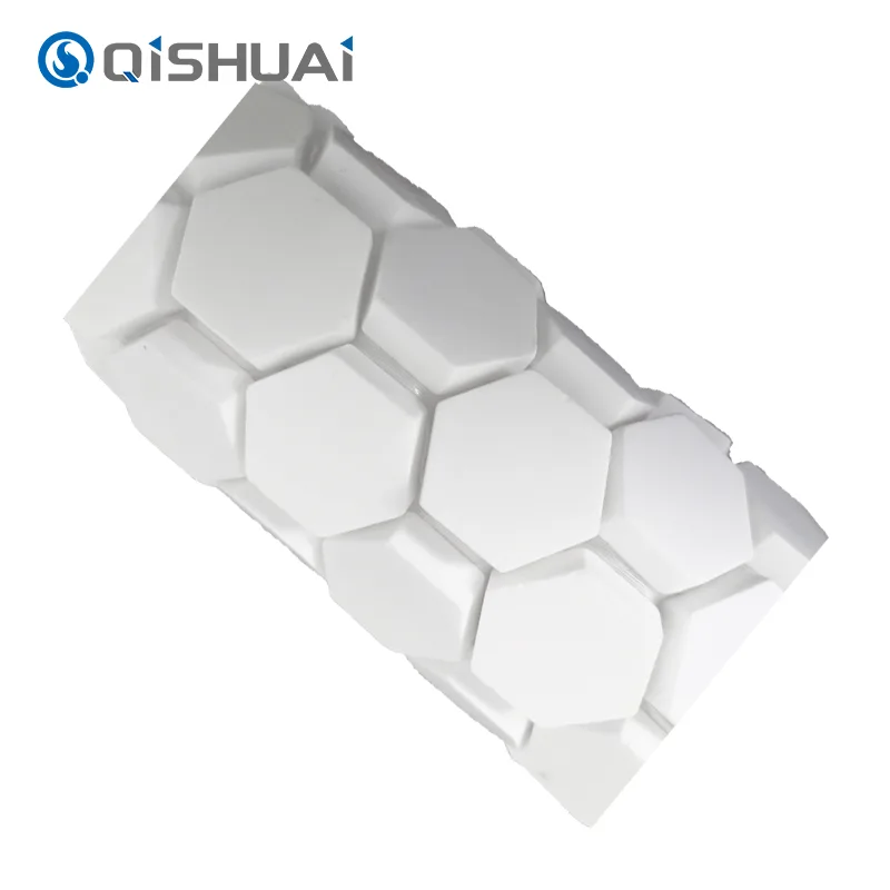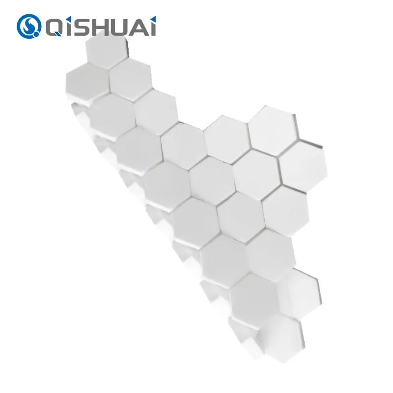 O mosaico cerâmico de alumina hexagonal de alta qualidade da Shandong Qishuai Wear-Resistant Equipment Co., Ltd., conforme ilustrado, apresenta um design hexagonal distinto que os diferencia dos ladrilhos quadrados ou circulares comuns. Cada mosaico cerâmico de alumina hexagonal possui bordas suaves e fluidas com detalhes requintados claramente visíveis.
